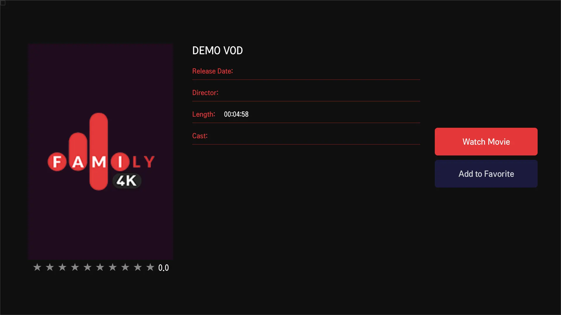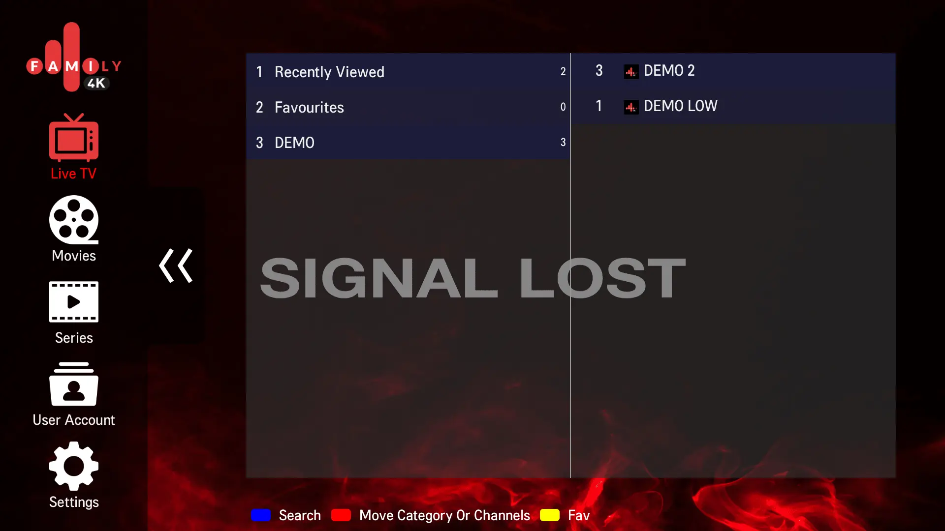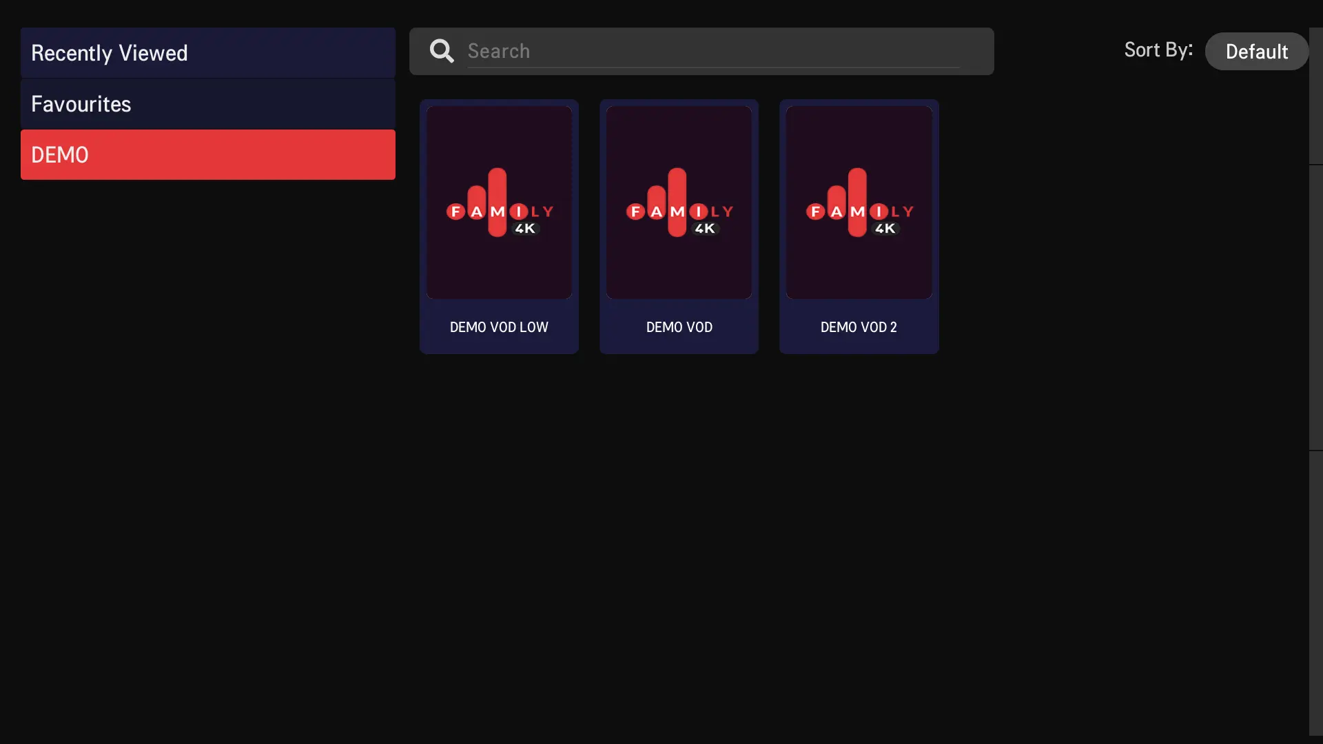 • Herhangi bir içerik içermez ve müşterilerin Family4K Player’ı kullanabilmeleri için kendi çalma listelerini yüklemeleri gerekir.